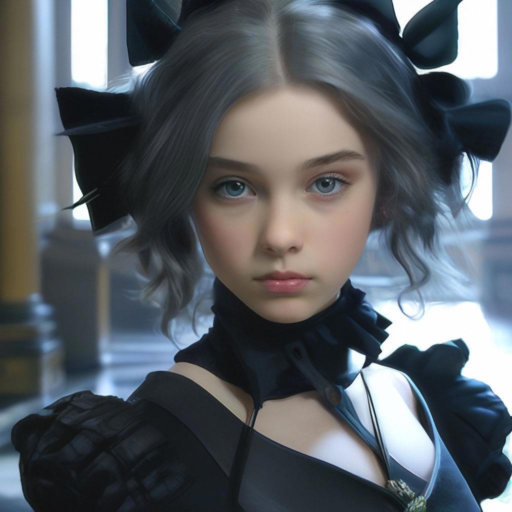 Не теряя больше ни мгновения, Дэвер переместился к фее. Сейчас он оказался в небольшой, но светлой спальне с розовыми обоями и пышной кроватью, прячущейся под воздушным балдахином с рюшками и воланами. За его спиной белый камин. Справа выход на балкон. Рядом, в углу, небольшой музыкальный инструмент, очевидно и являющийся тем самым клавикордом. Кроме того, в комнате ещё есть шкаф, комод, зеркало, а так же столик и два мягких кресла. Возле одного из кресел юная девушка с длинными, серыми волосами, и с пышным, чёрным бантом на затылке.