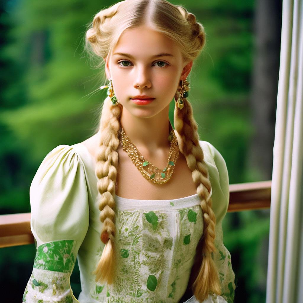 Феодалом этих земель оказалась молодая леди, с глазами янтарного цвета и светло-русыми волосами. Волосы собраны в весьма неплохую причёску с двумя косичками, обхватывающими голову с обеих сторон, словно корона. Сзади косы скреплены пышным бантом и ниспадают на плечи двумя длинными, золотистыми ручьями. На вид девушке чуть больше пятнадцати лет. Но насколько больше, определить трудно. Кроме того, госпожа оказалась одета в довольно простое платье, мало отличающееся от платьев крестьянок. Оно лишь пошито из более дорогой и качественной ткани. Кроме того, у девушки золотая цепочка на шее, серьги в ушах и заколка с драгоценным камнем в причёске. По этим признакам Алекс сразу догадался, что это сама маркиза, а не её очередная служанка.