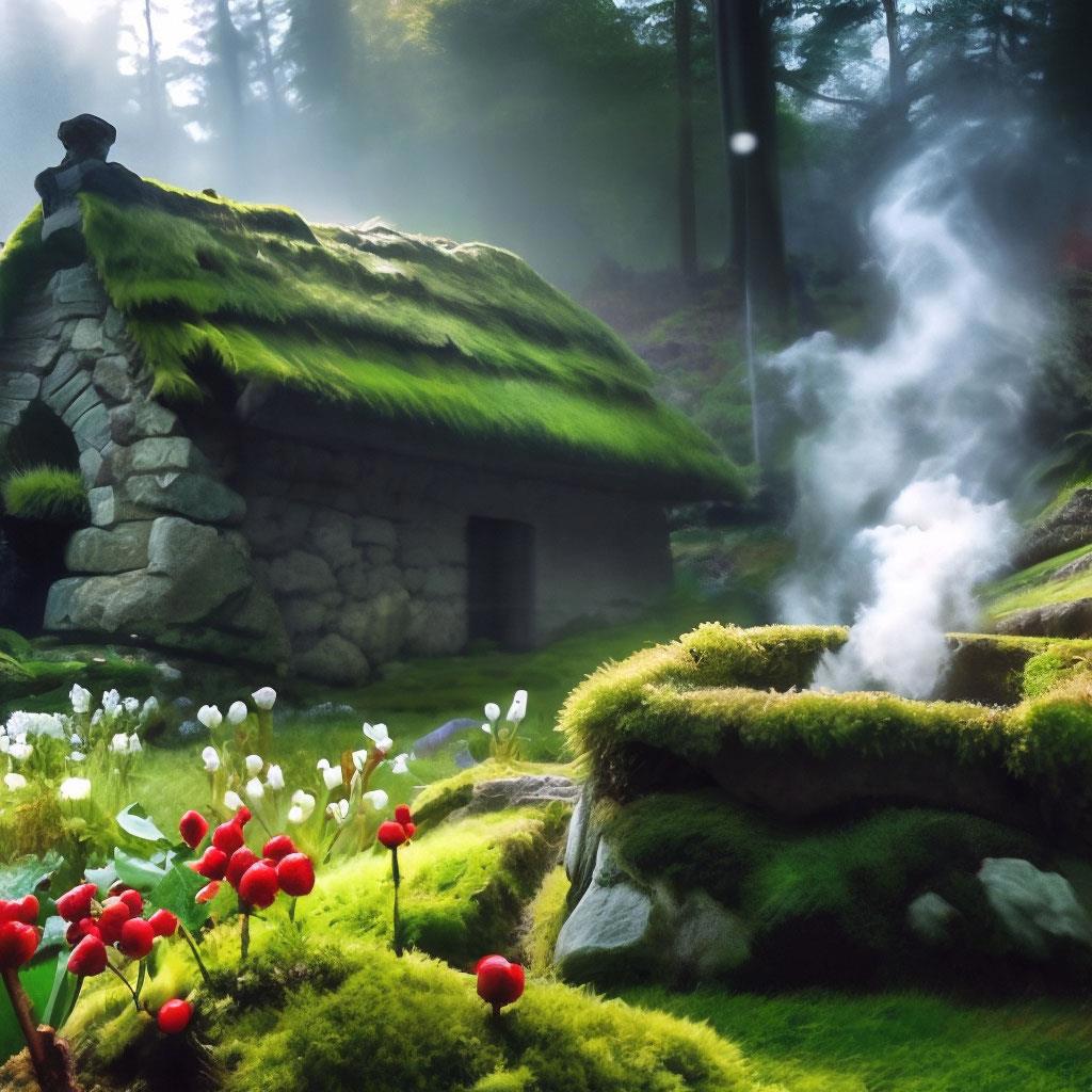 Немного поплутав по лесу, группа действительно вышла к небольшой хижине, удачно спрятанной между стволов огромных сосен. Жилище лесника оказалось низким, приземистым строением, грубо сложенным из дикого камня. Оно по самую кровлю утонуло в густом бурьяне, а крыша полностью заросла толстым слоем зелёного мха и мелкой порослью пушистых, молодых ёлочек. Поэтому Алекс едва не прошёл мимо.
