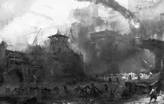 Сжечь город не получилось. Зажигательные снаряды требушетов обеспечивают периодические возгорания (в основном ночью), но вранцы успевают погасить огонь, не доводя пожары до глобальной катастрофы.