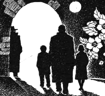 Изготовил ее мастер. И инструмент заточить, и карандаш подстрогать этим инструментом (хоть стамеской, хоть топором), и составить этим карандашом чертеж, и дверь по этому чертежу сделать – все было при нем. Дверь получилась такая, что посмотреть издали – большая плитка шоколада. Вся из квадратиков, а посреди – прямоугольник. Если же подойти и присмотреться – это уже не плитка шоколада, а настоящая картинная галерея: на каждом квадрате мелкой резьбой – цветы, бабочки, зверюшки, а в прямоугольнике – целый пейзаж. Все тонко, все точно, смотрел бы да и смотрел. А отойдешь – узор исчезает, и снова шоколадка. Только с большой латунной ручкой. И сверкает латунь, как золото. но без важности: берись и входи. И резьбой над дверью: «Добро пожаловать». Ну просто хочется войти А потянешь за ручку – тяжелая дверь идет легко, не скрипит и остановится точно там, где перестанешь тянуть. И распахнуться не старается, и захлопнуться не спешит. Приветливая дверь. По этому видно: сделана для людей и делана мастером.