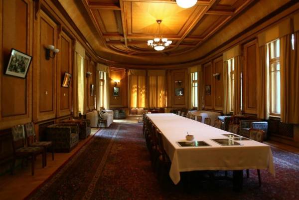 Точно, всё как Фёдор Челенков и запомнил на экскурсии в далёком будущем. Длинное зелёное строение и деревья вокруг убраны, голое место, нет, потом-то лес, а вокруг самой дачи приличный кусок простреливаемого пространства. Власик видимо дал команду всё расчистить, чтобы нельзя было незамеченным проникнуть на охраняемую, как ядерный объект, дачу Вождя.