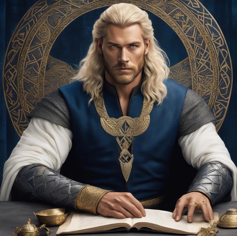 Владыка Тюрингии тоже принимал гостей: в королевской усадьбе, в Дорестаде, столице Фризии, огромный стол ломился от всевозможных яств и напитков, в то время как запыхавшиеся слуги подносили все новые угощения. Сам король восседал во главе стола: высокий молодой человек со светлыми волосами и коротко стриженной бородкой. Поверх расшитой золотом блузы был накинут темно-синий плащ, отороченный волчьим мехом – даже в королевских покоях, Редвальд не забывал, что свой путь к трону он начинал с "волчьих стай" саксов-"ножевиков", приносивших кровавые жертвы Одину на вершине священной горы Брокенберг. Об этом же напоминал и серебряный валькнут на широкой груди, а также выполненный разноцветными красками, раскинувшийся на всю стену, рисунок над королевским креслом – Всеотец, в сопровождении двух волков и с воронами на плечах. Раньше этого изображения тут не было, однако Редвальд став правителем Фризии, многое изменил в Дорестаде – и королевский дом за эти два года неоднократно перестраивался, весьма расширившись со времен прежнего короля Аудульфа. Имелись на стенах и иные божественные изображения: Идунн-Нехаленния, с корзиной яблок в руках и большим псом в ногах; Владыка Морей, Ньерд, в окружении китов и касаток простирал руки над волнами; его дети, златовласые близнецы Фрейр и Фрейя, бесстыдно обнимались на золотящемся колосьями поле; морской великан Эгир принимал асов на пиру в своем чертоге под водой, а рыжебородый здоровяк Тор удил на приманку из бычьей головы самого Мирового Змея – Йормунганда.