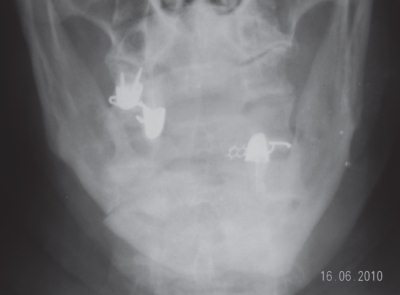 Также применялось рентгенологическое обследование нижней челюсти в прямой и боковой проекциях (рис. 1).