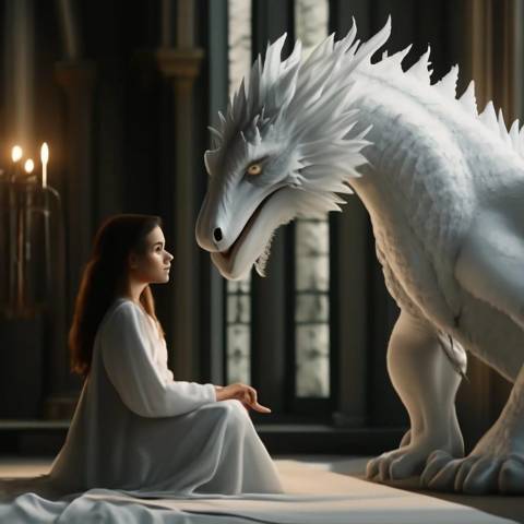 – Я не прогоню, ведь я стал другим. Не знаю, как это объяснить, но знаю точно, я не тот, кем был раньше. – задумчиво произнёс белый дракон, смотрящий сверху вниз, на маленькую девочку в белых одеяниях.