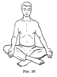 ♦ Сукхасана («удовольствия»). Сядьте по-турецки. У мужчин согнутая правая нога находится впереди левой, а у женщин – наоборот (рис. 38).