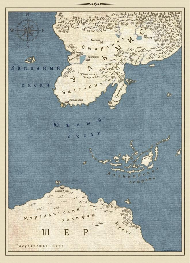 Война с самого начала давала понять, что затянется – а потому не могла не привлечь наёмников. Вербовали их и Мураддинский халифат, и Муанг. Многие приплывали с севера, из-за океана, за которым лежал другой огромный континент – в тамошних королевствах ещё на памяти живущего поколения окончилась великая война.