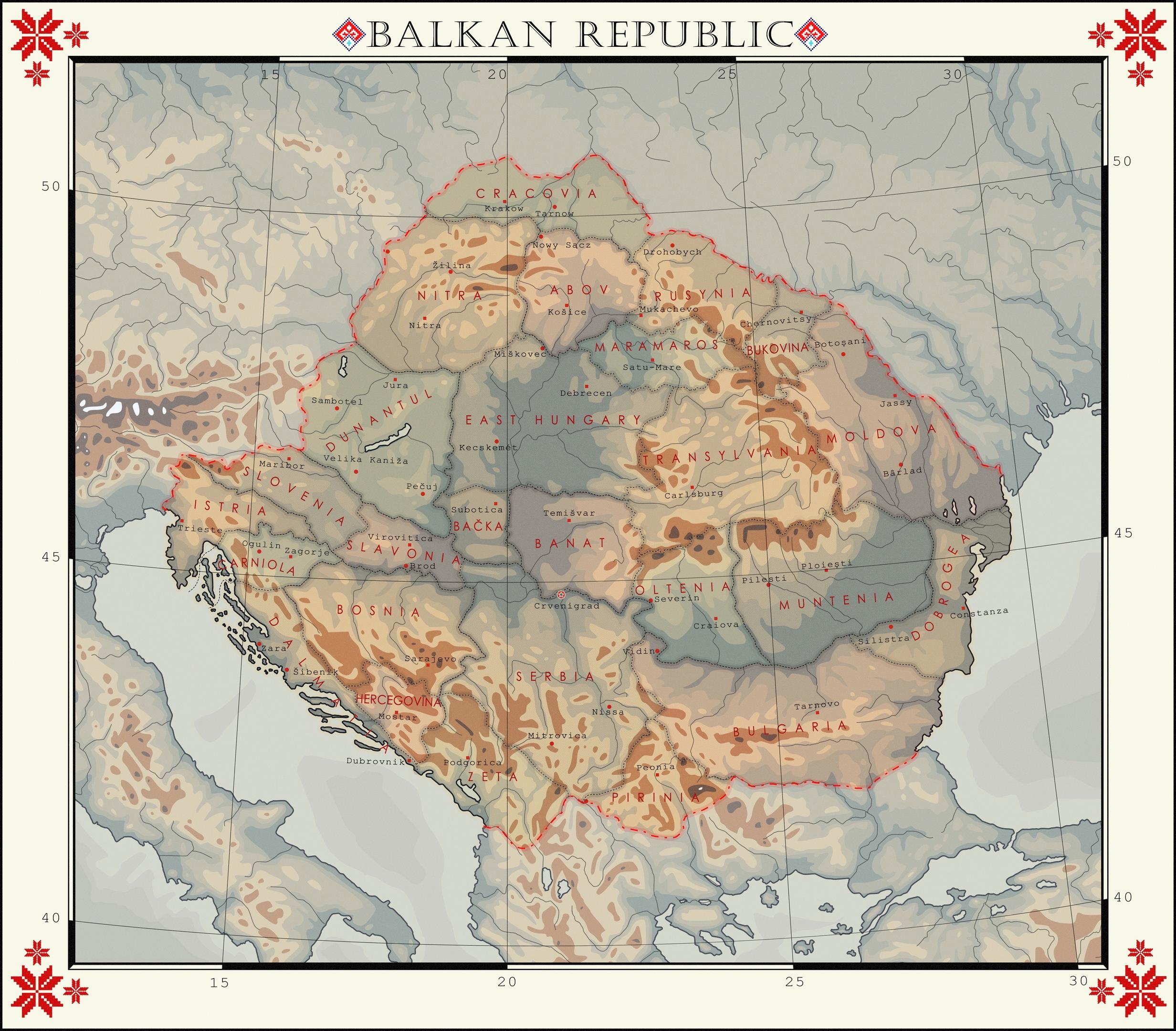По итогам Наполеоновских войн империя Габсбургов распалась на западную (Австрию) и восточную части. Это привело к новому витку конфликтов как внутри будущей Балканской республики, так и на границах: поляки и турки опять увидели возможность завоевать полуостров. Хотя формально уже в 1816 году была провозглашена Балканская империя со столицей в Црвениграде, реально император контролировал не более трети территории страны.