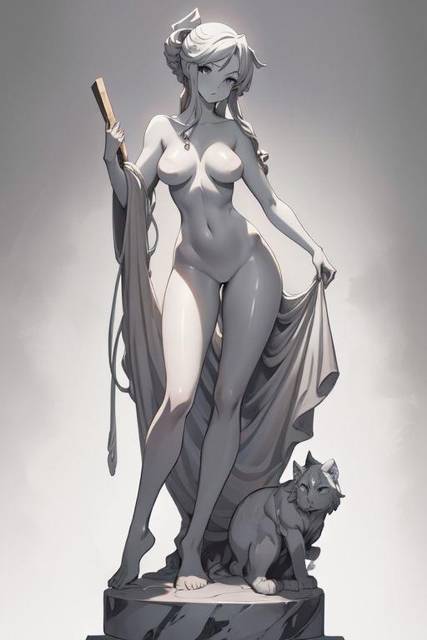 Лисий Хвост потёрла головку члена каменного воина. Но затем Рамми оглянулась с лукавой ухмылкой и, убедившись, что сюда не смотрят Хильда или кто-то из служительниц, обхватила пенис всей пятерней. Помастурбировав его, девушка махнула рукой, изображая семяизвержение, и высунула язык, ловя им воображаемую сперму.