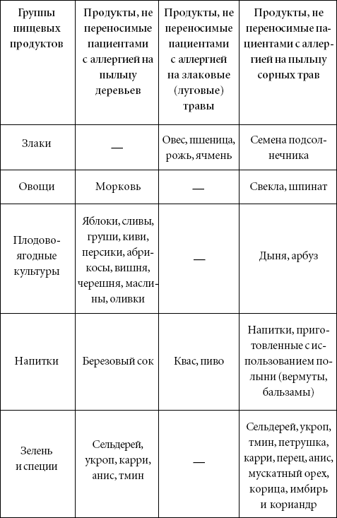 3. Продукты питания, не переносимые пациентами с поллинозом