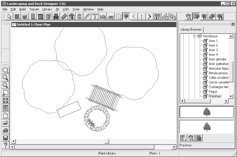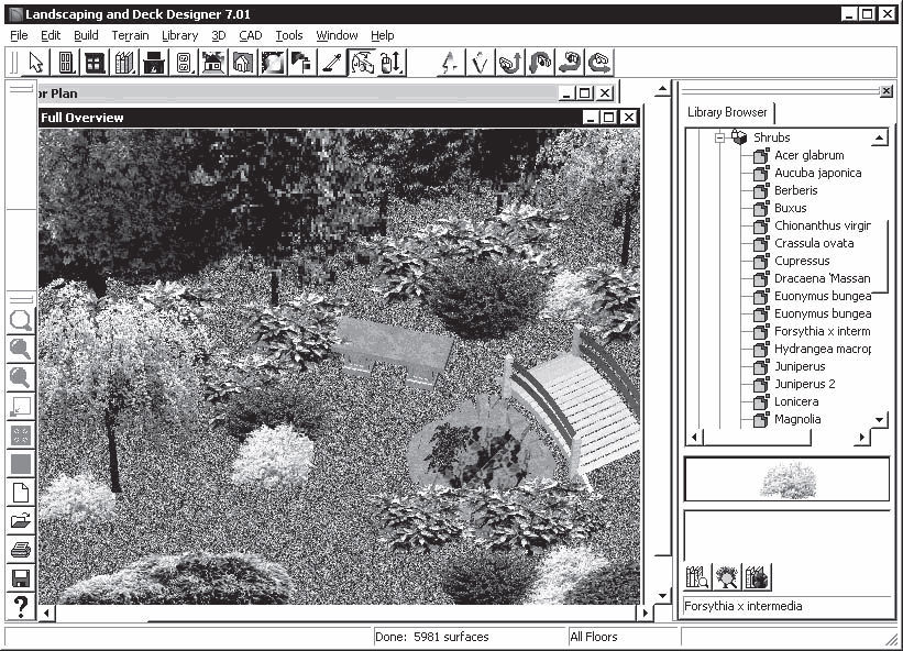 В следующей главе рассказывается, как разместить на участке деревья и разбить сад, используя стандартные элементы из библиотек программ ландшафтного дизайна.
