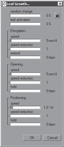 Если нажать кнопку Growth (Рост), то открывается окно для установки параметров анимации листьев (рис. 9.8).