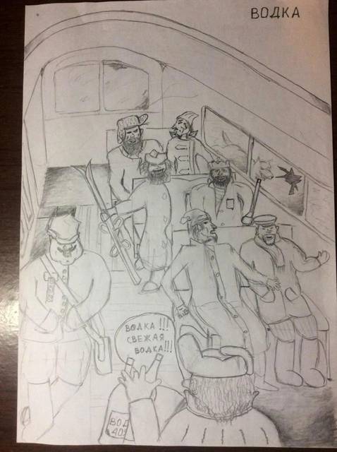 У Тихона уже было с собой две бутылки, на утро хватит. Он сидел спокойно. Многие пассажиры поднялись с сидений и принялись меняться. Продавец заломил невиданную цену – одна кунья шкурка или половина нефтяной акции за две бутылки. Люди просили сбавить цену, но дядька не соглашался. В конце концов, один из мужиков не выдержал, набил торговцу морду, отобрал авоськи с водкой и стал передавать бутылки остальным. Продавца вместе с лыжами выкинули в окно.