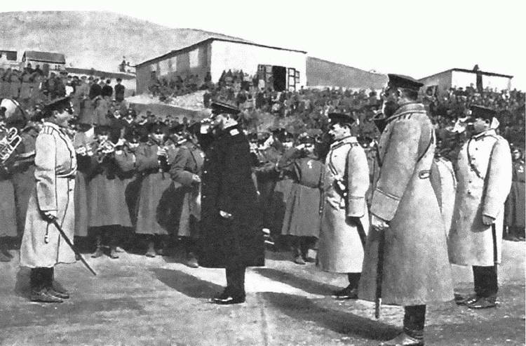 Командующий 2-й армией генерал Каульбарс А.В. здоровается со стрелками. Фотограф неизвестен