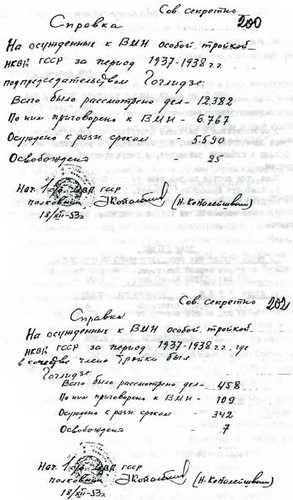 «…Вопрос: Сколько человек было осуждено тройкой к расстрелу за «террористические» высказывания против Берия?