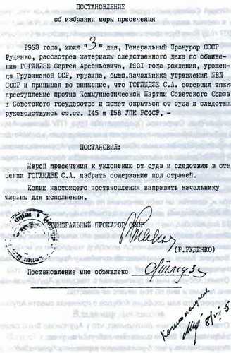 3 июля 1953 года – официальный арест С. Гоглидзе