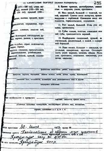 Здесь же находится анкета арестованного, составленная при аресте 27 июня 1953 года в Бутырской тюрьме МВД[71]71
