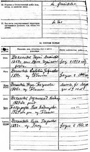 [Закрыть] Отец – Деканозов Георгий Михайлович (родился в 1863 г., уроженец с. Рупсы Горийского уезда) умер в 1938 году. Мать Елизавета Гавриловна (родилась в 1876 г., уроженка г. Тбилиси) умерла в 1914 году. Старшая сестра Нина умерла в 1920 году в г. Баку. Семья Деканозова на момент ареста состояла из его супруги Норы Тиграновны (1906 г. р.) и двух детей: сына Реджинальда (1927 г. р.) – аспиранта МГИМО и дочери Наны (1929 г. р.). В анкете указывается, что Деканозов арестован 30 июня 1953 года, а постановление об избрании на него меры пресечения Прокуратурой СССР вынесено только 03.07.1953 г. Вот, пожалуй, и все, что можно узнать о Деканозове из уголовного дела относительно его социально-демографических данных.