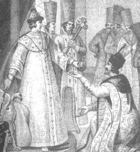 Царь Федор Иванович делает правителем России Бориса Годунова