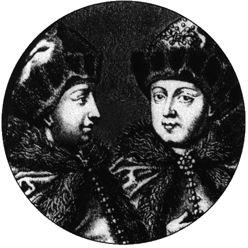 Цари Иван Алексеевич (в профиль) и Петр Алексеевич