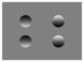 Свет в естественной среде падает на предметы сверху, а поэтому тень является отражением их объёма. Соответственно, если тень появляется снизу, то предмет должен быть выгнутым, а если сверху, то вогнутым.