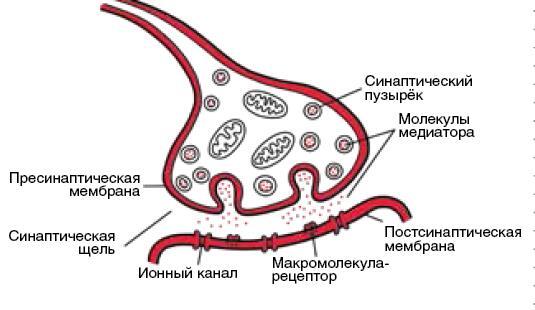 Осуществляется этот «разговор» за счёт нейромедиатора, который выстреливает из «говорящего» нейрона (пресинаптическая мембрана) в «слушающий» (постсинаптическая мембрана).
