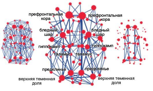 Наиболее интересные исследования в направлении сетевой нейронауки, на мой взгляд, осуществляются творческими коллективами под руководством Мартейна ван ден Хевеля (Утрехтский университет в Нидерландах) и Олафа Спорнса (Университет Индианы в США). Эти научные коллективы опубликовали совместную работу, в которой показали стройность системы внутримозговых связей.