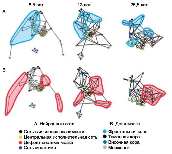 В детском мозге связность организована в основном по своему анатомическому расположению, и лишь постепенно, с возрастом, происходит специализация и функциональное размежевание групп нейронов в рамках соответствующих областей мозга.