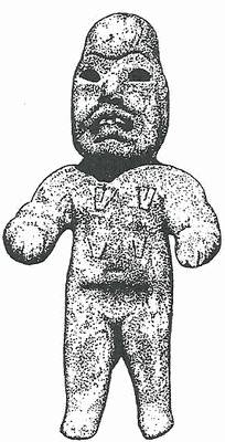 Рис. 139. Серпентиновая. фигурка с характерной для ольмекской иконографии деформацией головы и «гримасой-ягуара». Ла-Вента (по: [Drucker, Heizer, Squier, 1959,'р. 213]).