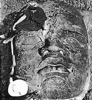 Рис. 21. 30-тонная каменная голова, найденная экспедицией Национального географического общества в Сан-Лоренсо в 1945 г. Местные жители назвали ее «Е! Rey» (царь, правитель) (по: [National Geographic…, 1955, p. 216]).