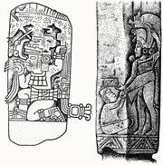 Рис. 88. Стела 9. Серро-де-лас-Месас (по: [Stirling, 1943, р. 37]). Рис. 90. Стела из Серро-де-ла-Пьедра (по: [Bernal, 1969, р.148]).
