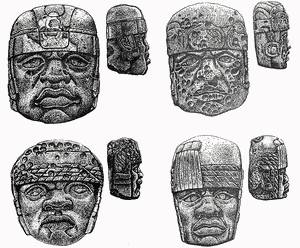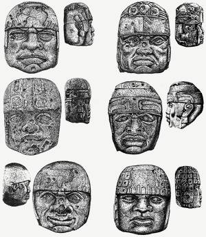 Много вопросов по-прежнему существует по поводу колоссальных каменных голов. Кого они изображают (реальных людей или вымышленных)? В какое время они были созданы? Каким образом осуществлялась их транспортировка от каменоломен (в готовом виде или в виде полуфабриката)? Что означает необычная традиция переделки некоторых тронов в головы (демонстрацию преемственности, пренебрежение предшественником, простую экономию ценного материала)?