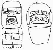 – антропоморфные изображения. К ним относятся колоссальные каменные головы и скульптуры сидящих или стоящих людей в замысловатых головных уборах, с украшениями и различными предметами в руках (рис. 94, 95)[264].