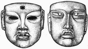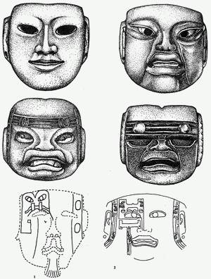 К сожалению, практически все маски, за небольшим исключением> находятся в частных коллекциях[274]. Отсутствие достаточной информации о контексте их обнаружения затрудняет и интерпретацию их места и роли в ольмекском ритуале. Наличие в масках небольших отверстий дает основание предполагать, что их носили во время специальных церемоний, или рассматривать как часть погребального инвентаря.