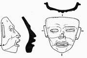 Рис. 133. «Маска Тео» (место находки неизвестно). Внешний вид и расположение надписи (по: [Сое, Houston, 200, р. 156–157]).