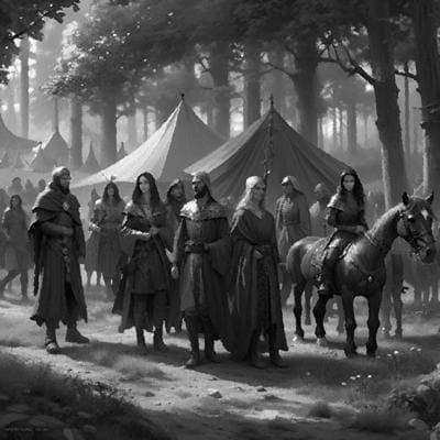 Вся масса приехавших дворян разбилась на несколько отдельных компаний. Оказалось, что на саму охоту с королем отправилось не так много людей, как я ожидал. Остальные предпочли общаться на месте подготовленного бивуака, меж шатров и ломящихся от различных блюд столов.