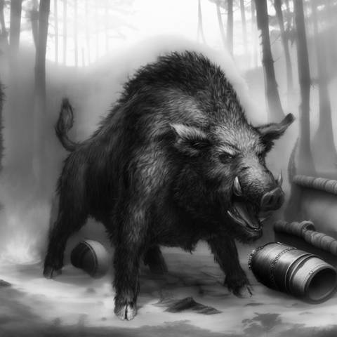 Отошедшие на фланги бойцы смело бросились на кабана, пытаясь поразить его своими копьями, но у них явно не выходит. Я начал судорожно осматриваться: мне необходимо вооружиться чем-то получше короткого меча.