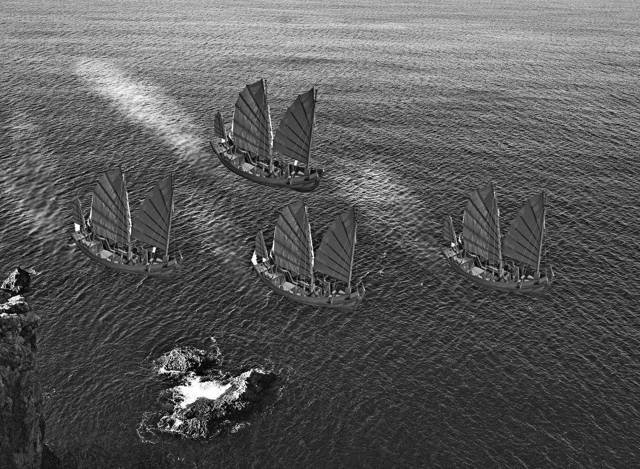 Я поднялся со своего «насиженного» места и подошел к релингу. Мы идем, держась в прямой видимости от берега, поэтому не пришлось лезть на мачту, чтобы увидеть выходящие из-за мыса джонки лаоминцев.