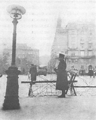 Венгерский полицейский дежурит на улицах осажденного Будапешта