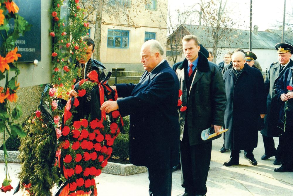 Визит В. С. Черномырдина на 200-летие г. Буденновска. У памятника погибшим при защите г. Буденновска 14–19 июня 1995 года. Ноябрь 1999