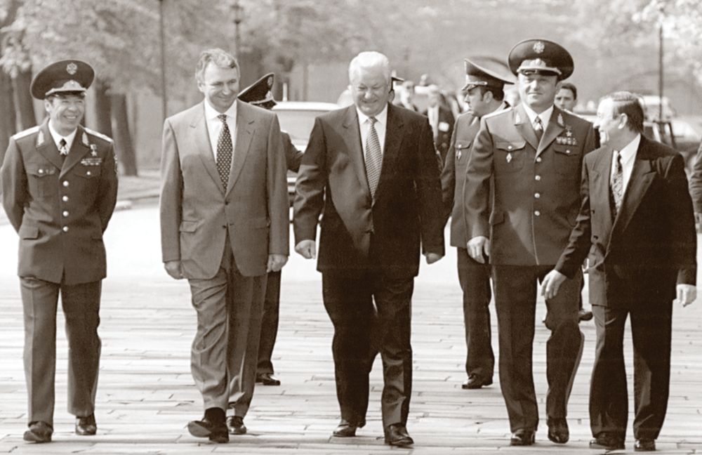 Министр внутренних дел Российской Федерации В. Ф. Ерин, первый заместитель Председателя Правительства Российской Федерации О. Н. Сосковец, Президент Российской Федерации Б. Н. Ельцин, министр обороны Российской Федерации П. С. Грачев и начальник Службы безопасности Президента Российской Федерации А. В. Коржаков. 1990-е