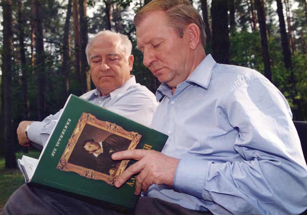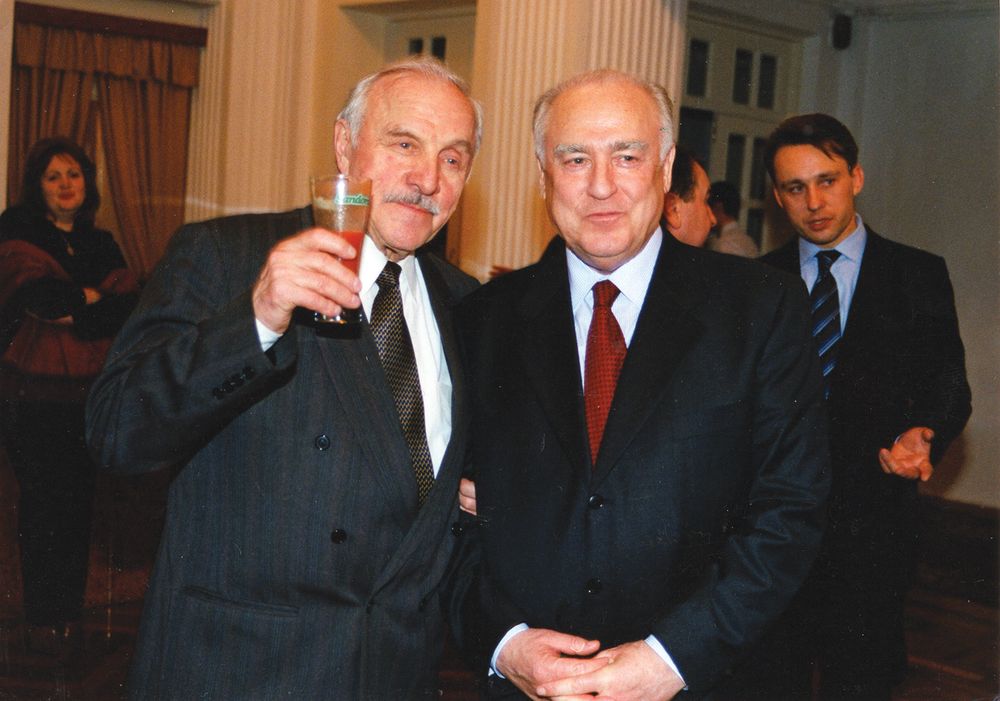 В. С. Черномырдин и художественный руководитель театра им. Вахтангова Михаил Ульянов. г. Киев, февраль 2002