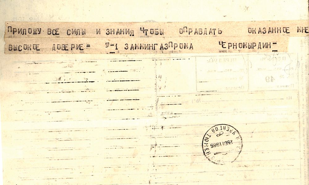 Новенькое удостоверение председателя правления Государственного концерна «Газпром» В. С. Черномырдина. 1990