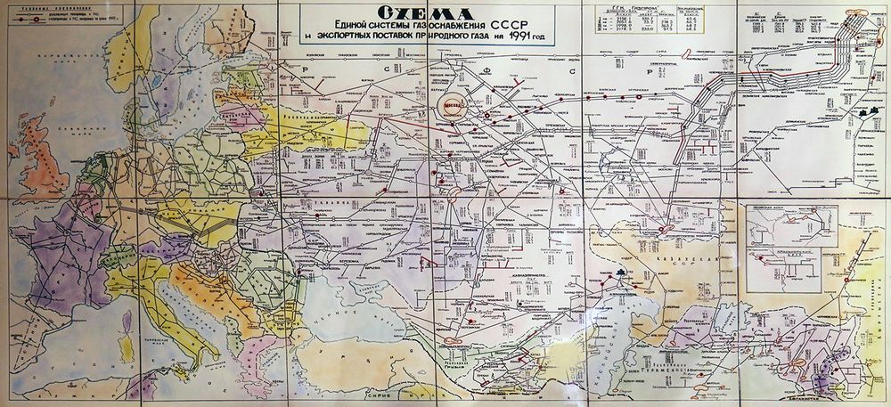 Фронт работы Газпрома – Схема единой системы газоснабжения СССР и экспортных поставок природного газа на 1991 год