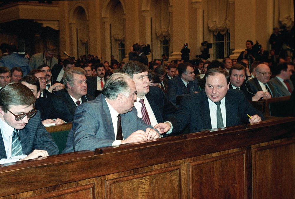 Что касается съезда, принятые депутатами поправки к конституции наделяли его правом принимать к рассмотрению и решать «любой вопрос, отнесенный к компетенции РСФСР», отменять указы и распоряжения президента, отправлять в отставку Правительство, назначать референдумы. Наконец, съезд получал право отстранять президента от должности – в случае заключения Конституционного суда о том, что президент нарушил конституцию, законы РСФСР или присягу, данную им во время вступления в должность.