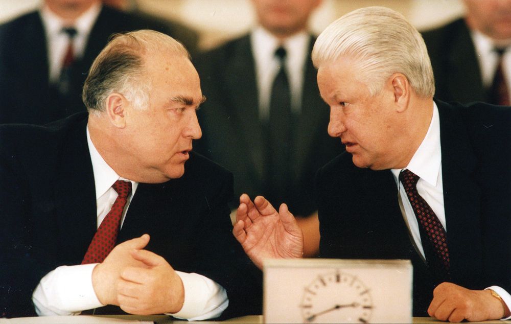 Вместе с президентом. В. С. Черномырдин и Б. Н. Ельцин во время церемонии подписания Договора об общественном согласии в Кремле. 28 апреля 1994