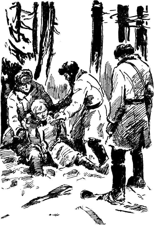 Теперь предстоял трудный путь обратно. Решено было возвратиться всем. Без проводника идти дальше они не могли, а один из местных сотрудников был ранен. Причем узнали об этом неожиданно. Сначала распределились так: Луганов и сотрудник с простреленным полушубком ведут Зыбина в лесхоз, а Миронов и второй сотрудник продолжают путь на стойбище. Но едва тронулись в путь, сотрудник вдруг побелел и сел в снег. Миронов подбежал, нагнулся над ним, и обнаружилось, что парень ранен в плечо. Сгоряча, в момент схватки, он этого и не заметил, а теперь почувствовал слабость и боль.