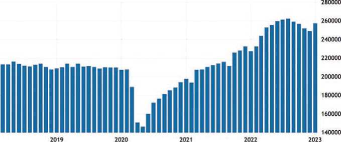 ВВП США по годам: 1980–2023 // Мировые Финансы – экономика, рынки, инвестиции. URL: https://www.global-finances.ru/vvp-ssha-po-godam/ (дата обращения: 16.06.2023); ВВП США по годам. График и таблица // SVSPB.NET. URL: https://www.svspb.net/danmark/vvp. php?l=ssha# (дата обращения: 16.06.2023).