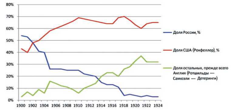 Хоть с 1905 по 1917 год Нобелям и удалось восстановить добычу нефти в Баку до уровня 8–9 млн тонн в год, но в период «разгула революции» с 1918 до 1924 года ее почти уничтожили, опустив до 3–4 млн тонн в год. Таким образом, доля России в мировой нефтедобыче составила мизерные 3 %.