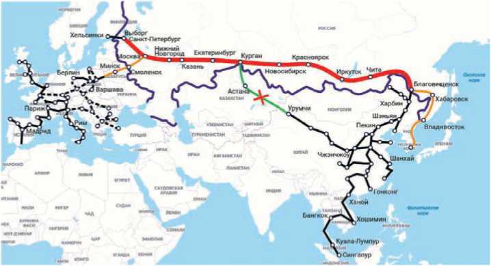 На востоке ветка Благовещенск – Владивосток с дальнейшим удлинением до Сеула.